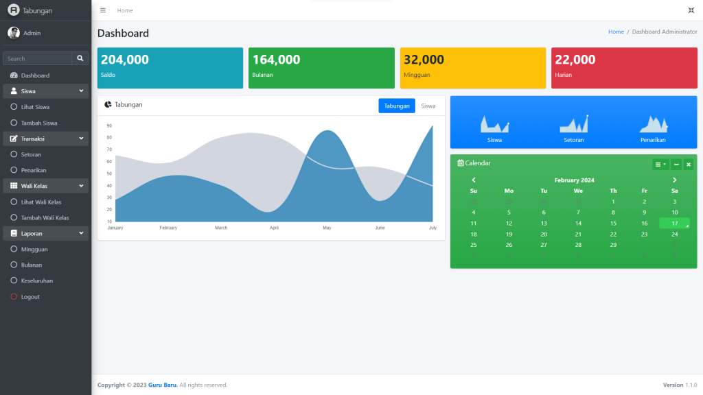 - Riwayat Transaksi: Pengguna dapat melihat riwayat transaksi tabungan siswa untuk memantau aktivitas keuangan mereka.